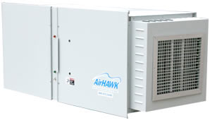 AirHAWK 3000 XL ceiling-mounted units are placed in facilities such as firehouses, vehicle maintenance, production and others, to eliminate airborne contaminants that can cause debilitating diseases like emphysema and cancer. The units' four-stage filtration process removes or neutralizes particulates and airborne gases, viruses, bacteria, solvents, mold spores and more. Clean, purified air is then evenly dispersed back into the facility.